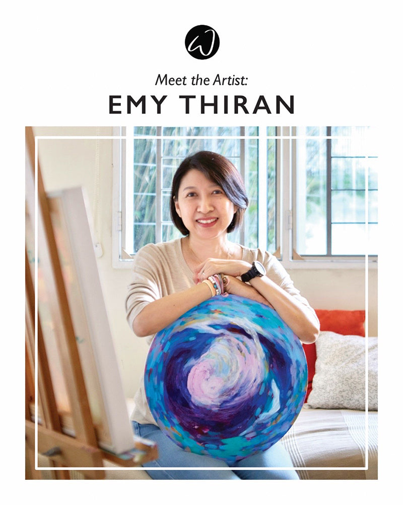 Emy Thiran is a Malaysian artist whose work explores gratitude, mindfulness, and memory. She earned her BFA from the University of Bridgeport (USA) before completing an MA and a PhD in Art History.